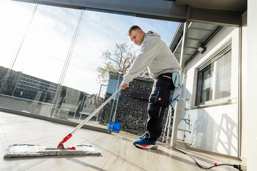 Ob täglich, wöchentlich oder nach individueller Absprache – bei der Unterhaltsreinigung richten wir uns ganz nach Ihren Bedürfnissen. Regelmäßige Pflege erhält nicht nur den Wert Ihrer Räumlichkeiten, sondern sorgt auch für ein angenehmes und hygienisches Umfeld für Mitarbeitende, Kunden oder Besucher.